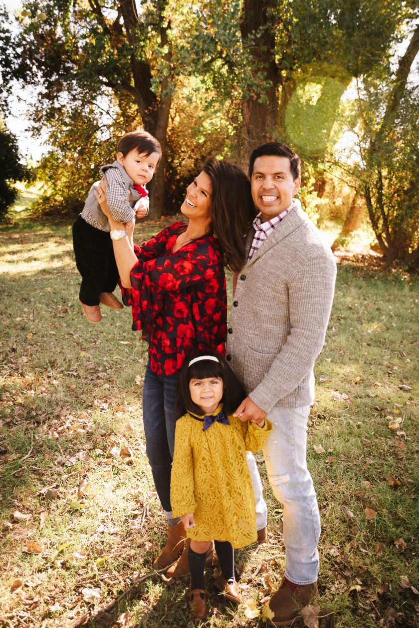 Be adventurous in your color choice. While typically in the autumn months, families will opt for warm tones and rich hues, don’t be afraid to play up an accent color like teal or magenta. Not every single family member needs to be in the same exact color either. Generally, three colors are a sure bet, no matter what your family size is. But that’s not to say you can’t play up textures and patterns. Don’t be afraid to mix & match. Think stripes with polka dots, florals with plaids, matte and flat tones with sparkles and sequins. You get where I’m going here? It’s all good in the color scheme ‘hood. You’ve got room to stretch the colors a bit and harmonize. Trust me. It doesn’t have to feel so restricting, this whole color matching game. Remember, you want your family to look like your family, not a page from the retailer’s catalogue. Authenticity for the win—all the way!
